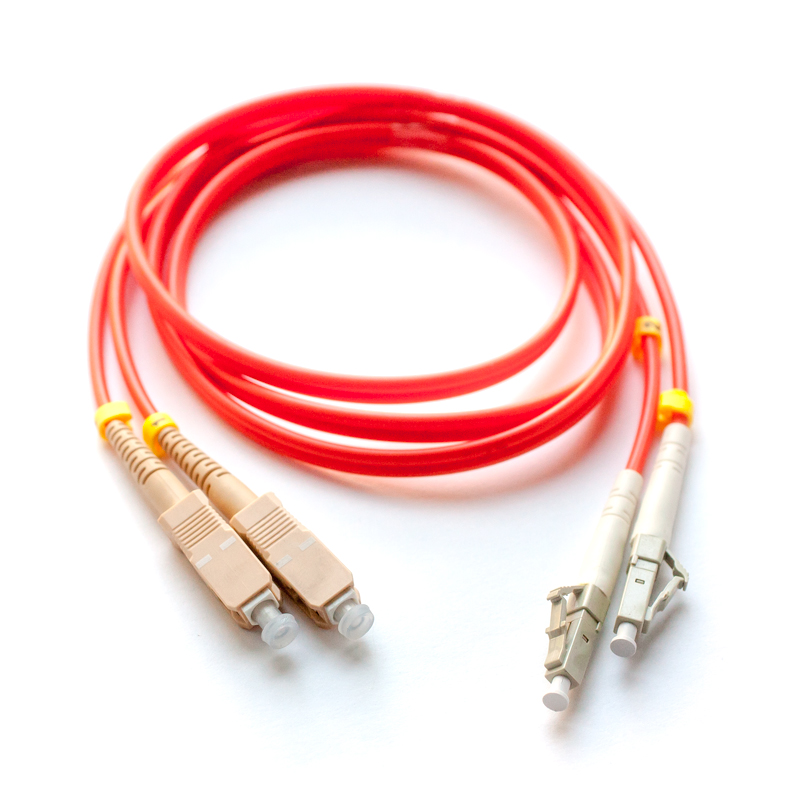 Патчкорд оптический дуплексный (двухволоконный) с коннекторами LC и FC, 2FC-2LC, с двумя многомодовы..