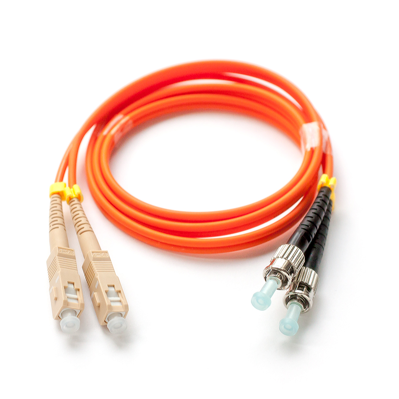 Патчкорд оптический дуплексный (двухволоконный) с коннекторами FC и ST, 2ST-2FC, с двумя многомодовы..