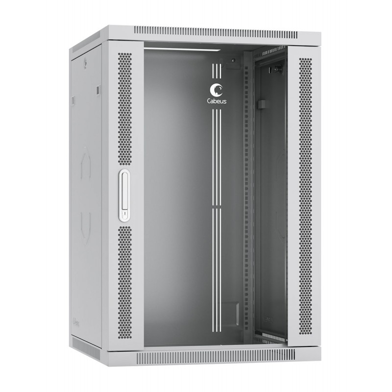 Шкаф Cabeus настенный 18U 19" 600x450 mm телекоммуникационный дверь металл, серый, разборный