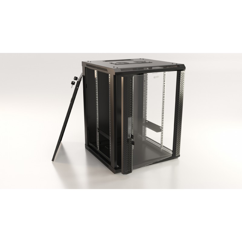 Шкаф напольный 19" 12U, 650x600х600мм, металлическая передняя дверь с замком, две боковые панели
